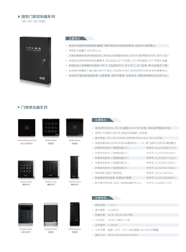 • 国密四级认证门禁系统 - 符合国家密码管理局标准,确保访问安全