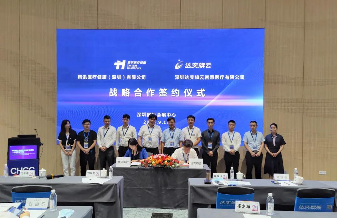 大会第一天,在达实智能专场,深圳达实智能股份有限公司控股子公司深圳达实旗云智慧医疗有限公司与腾讯医疗健康(深圳)有限公司签署战略合作协议,双方将围绕健康城市、区域医疗、智慧医院等领域开展进一步的合作,共同探索医疗互联网、数字健康的新路径、新模式,促进行业融合与创新。