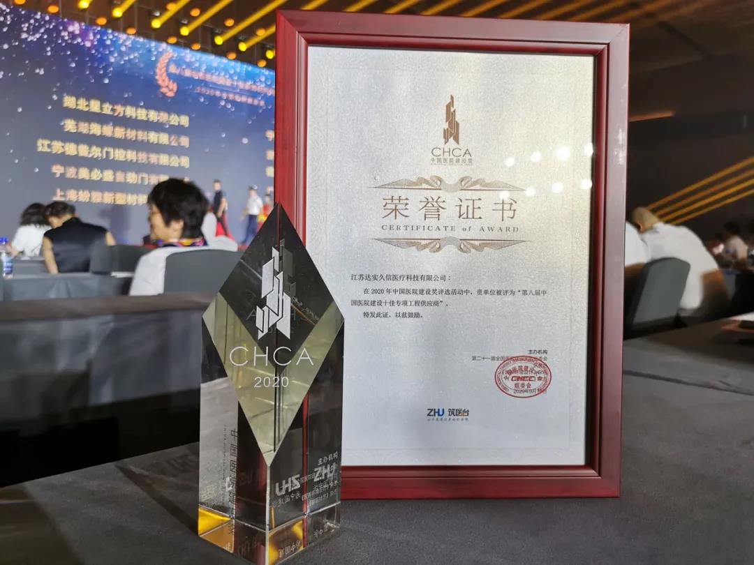 ▲ 达实智能全资子公司达实久信再次荣膺中国医院建设十佳专项工程供应商